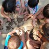 The morning circle begins with a short yoga sequence (sun salutations by Mai Cocopelli). Things like fantasy travel/massage stories/reading stories will always be built in and lead into the activities.